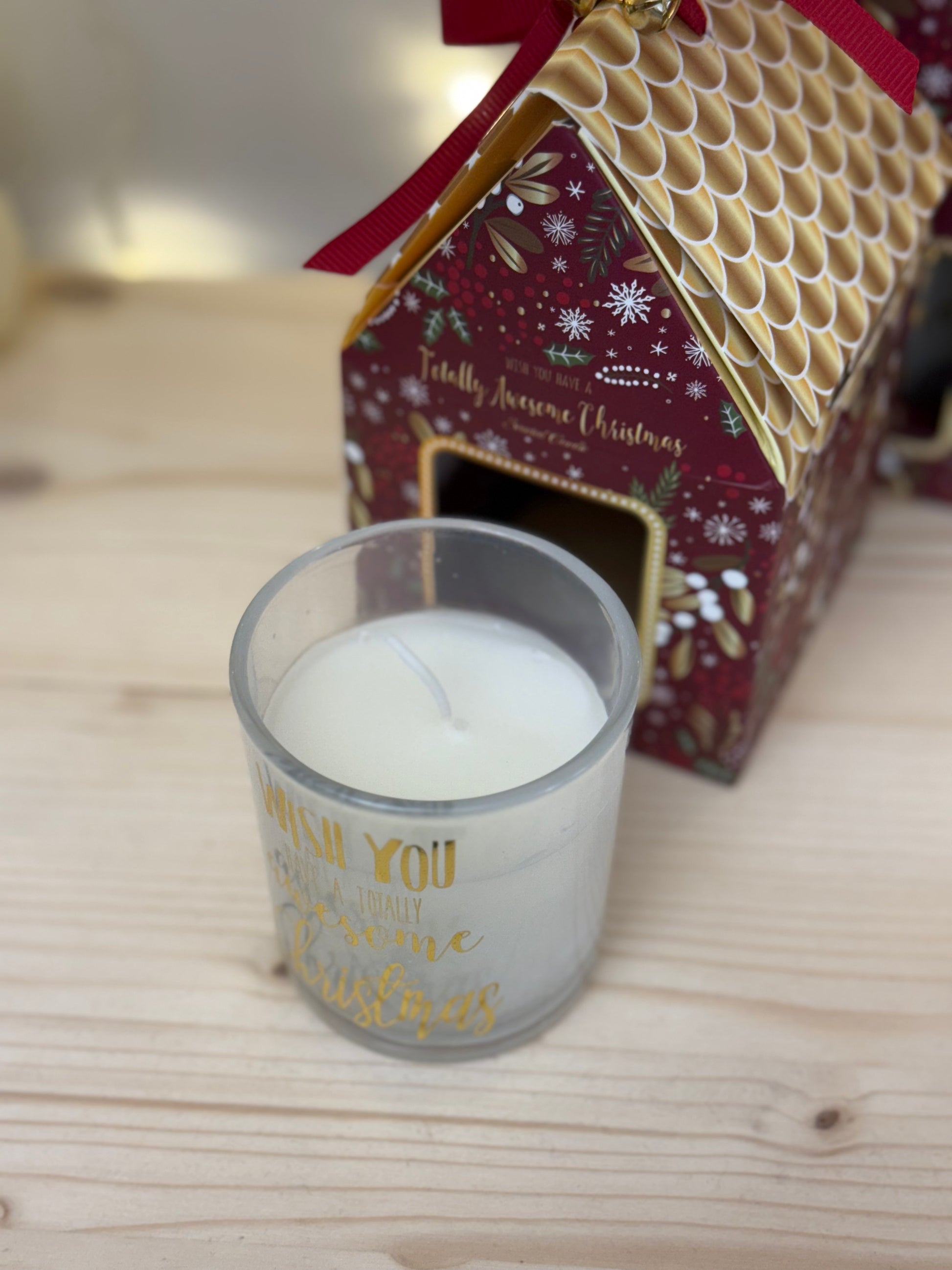 Candela Natalizia in Vetro con Casetta - Vaniglia (20 ore)