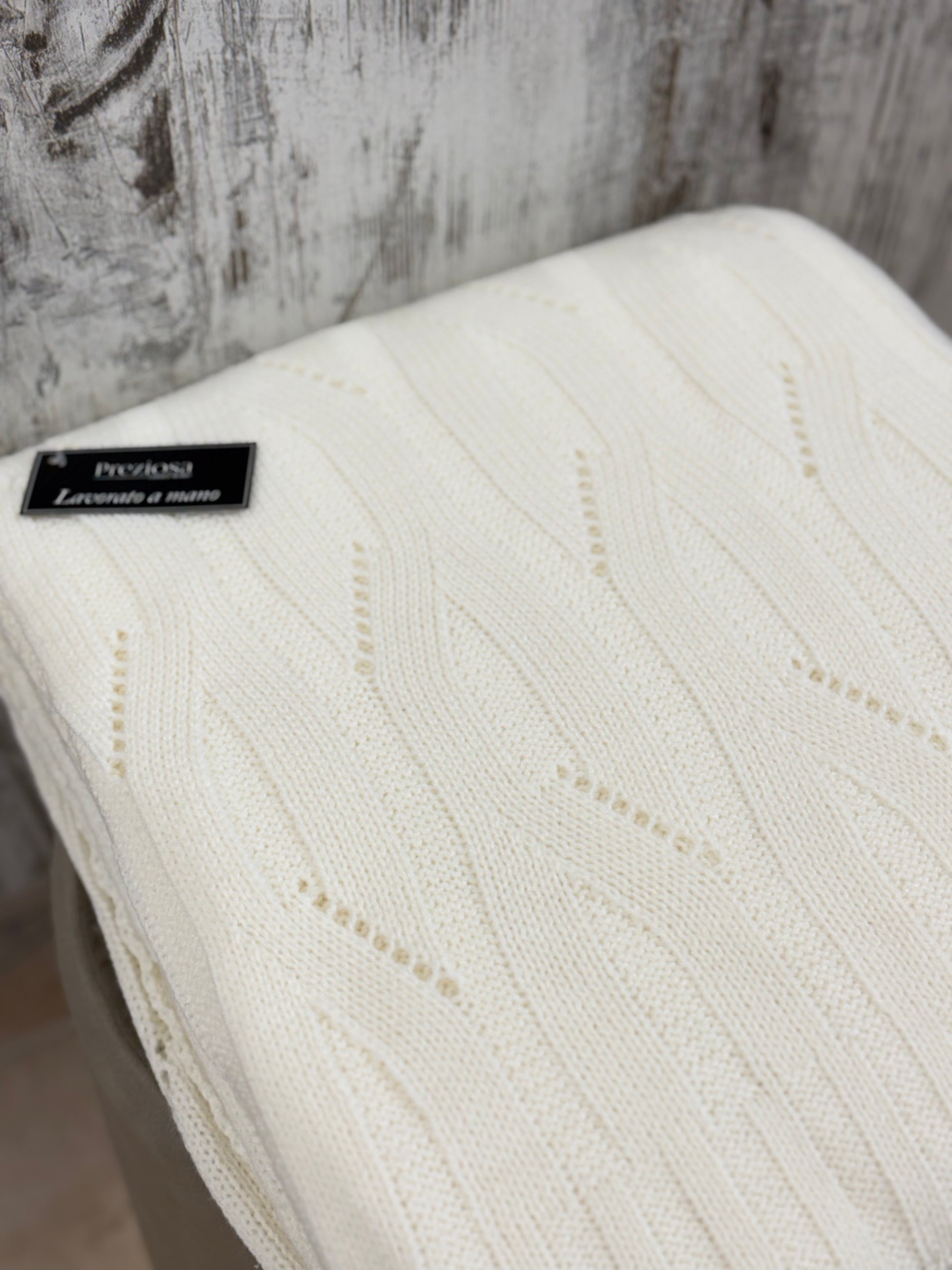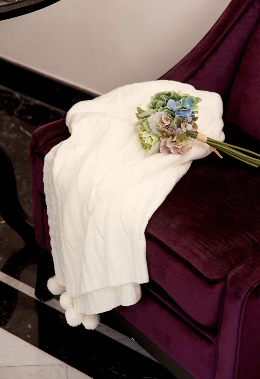 Preziosa Luxury ha ideato una linea di coperte dal design Made in Italy perfette per ogni camera da letto. Questa coperta in maglia lavorata ad intreccio con pon-pon vi regalerà una confortevole sensazione di morbidezza