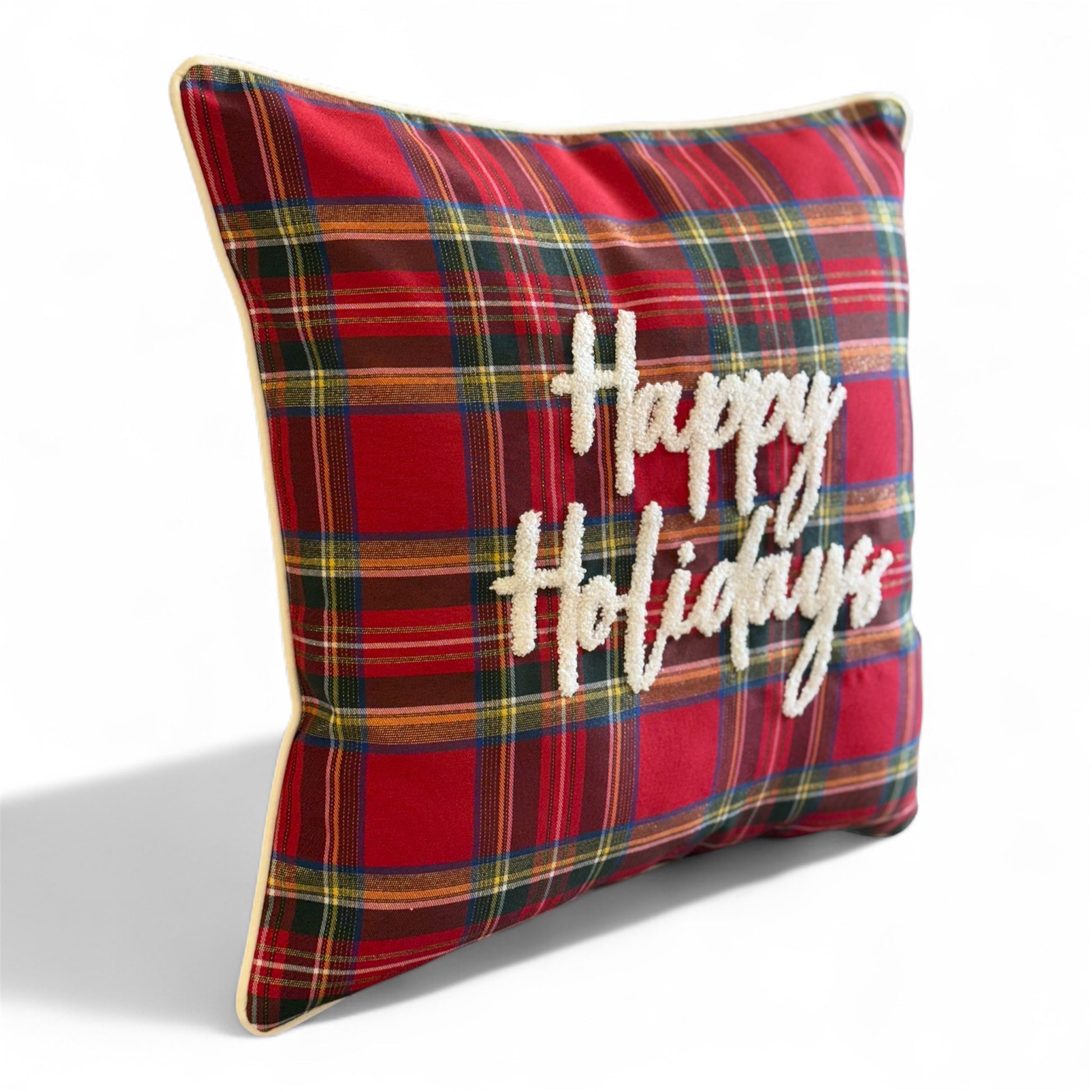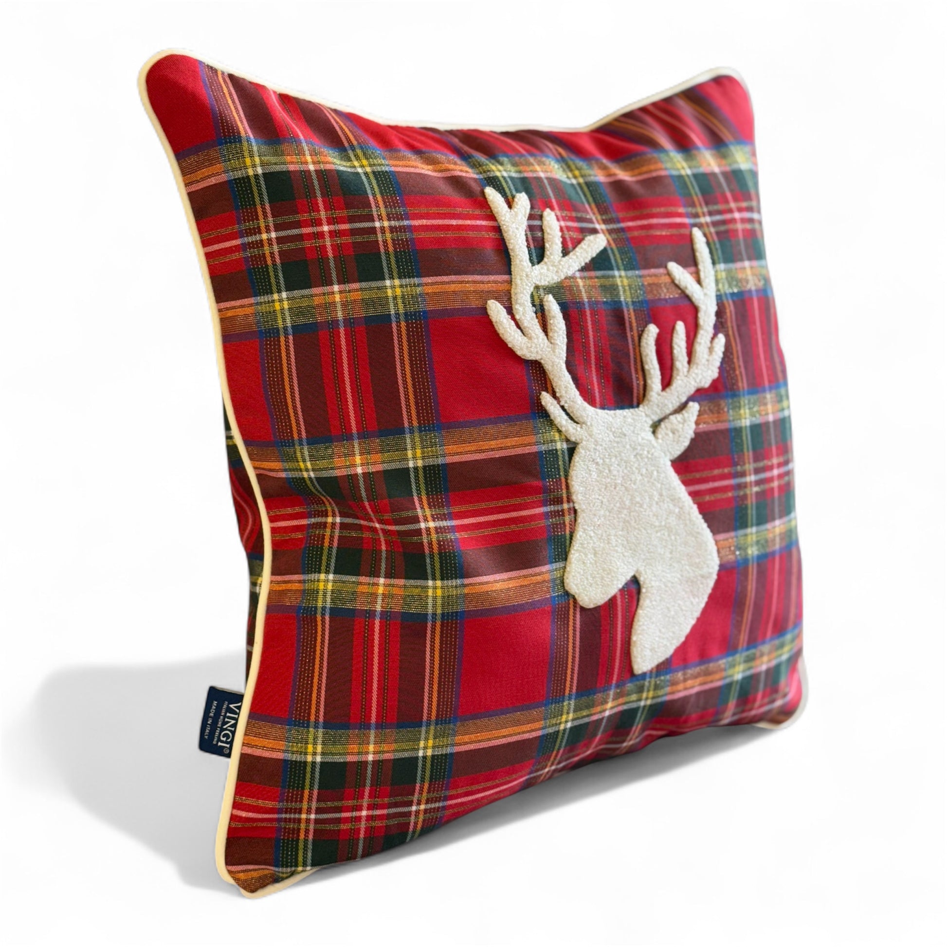 Realizzato in Italia con tessuto scozzese rosso e ricamo morbido in rilievo, è perfetto per decorare divano, camera da letto o ingresso.