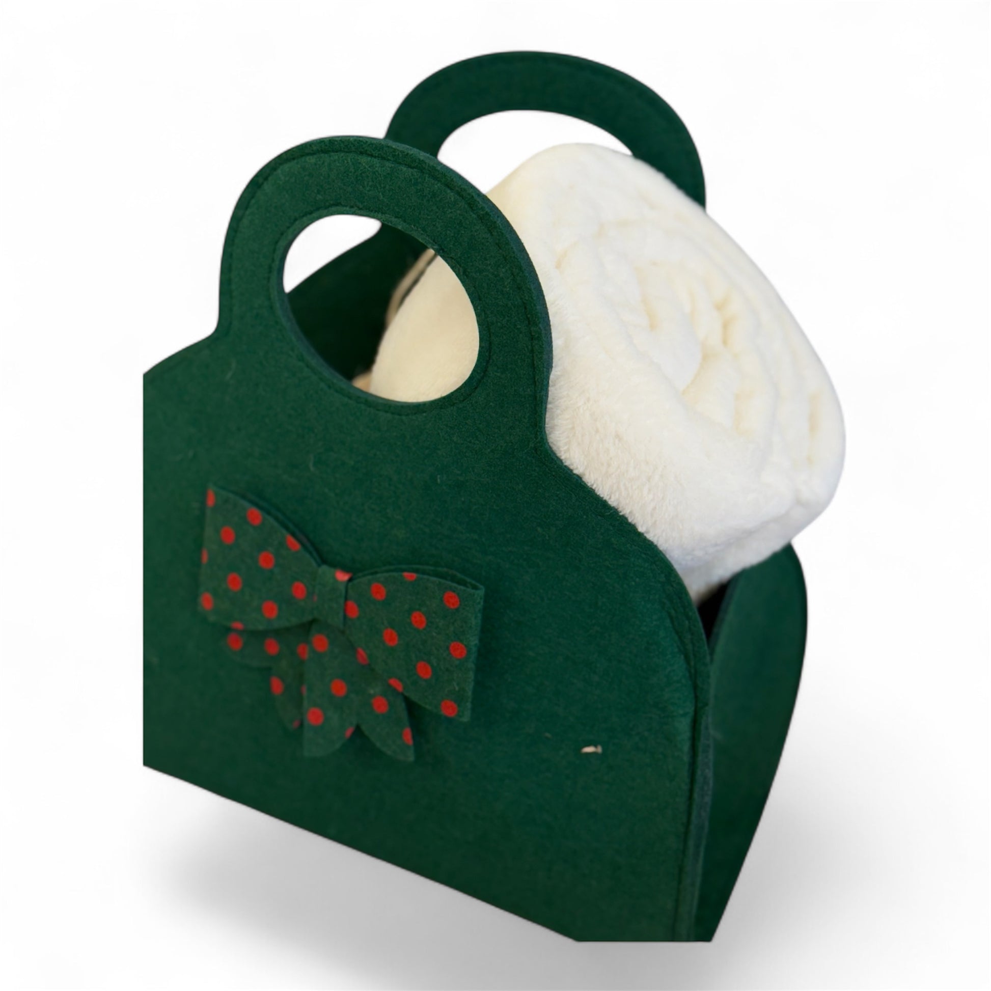 Pochette in Feltro con Plaid Stampato, Plaid 200x220 in Morbida Ciniglia