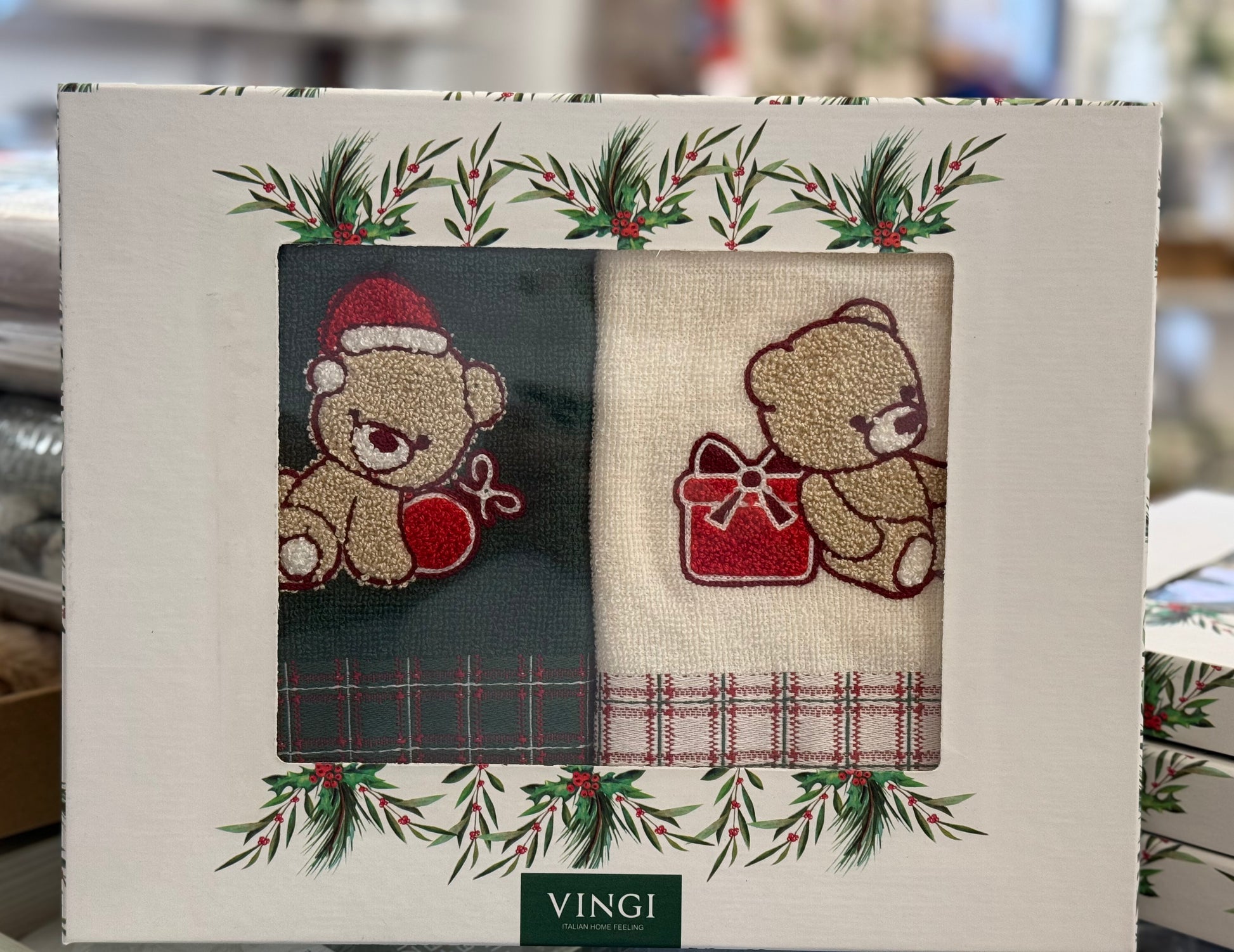 Set 2 Strofinacci Natalizi in Scatola Vingi Spugna 100% Cotone