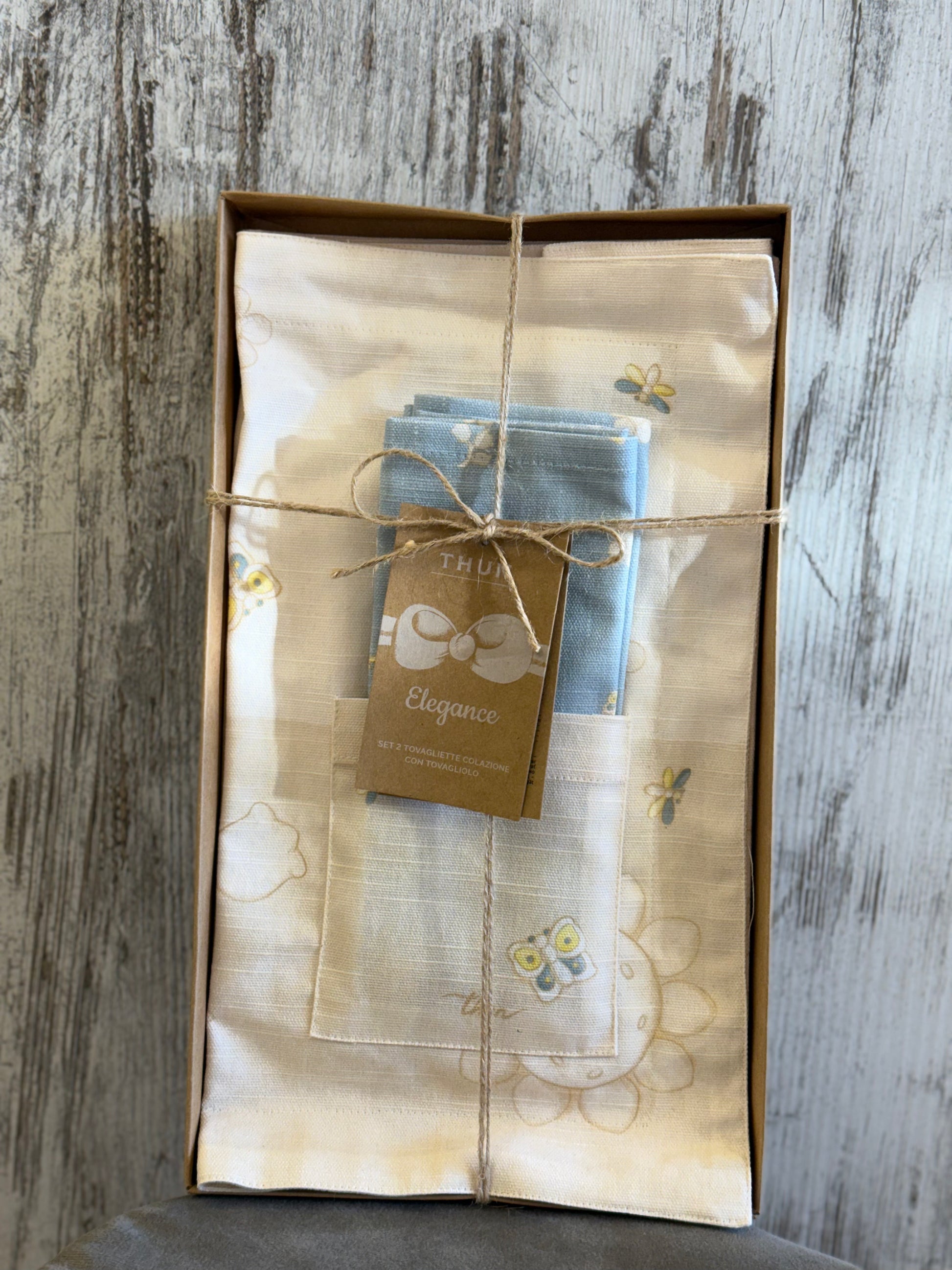 Set 2 tovagliette per la colazione con tovagliolo in cotone 100%
