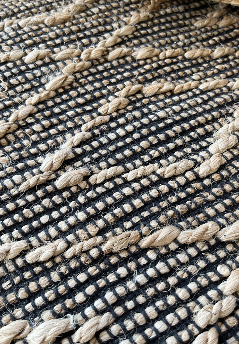 Tappeto in Juta e Cotone con Disegno Geometrico 60x110-Intrecciato a Mano I Juta J23B
