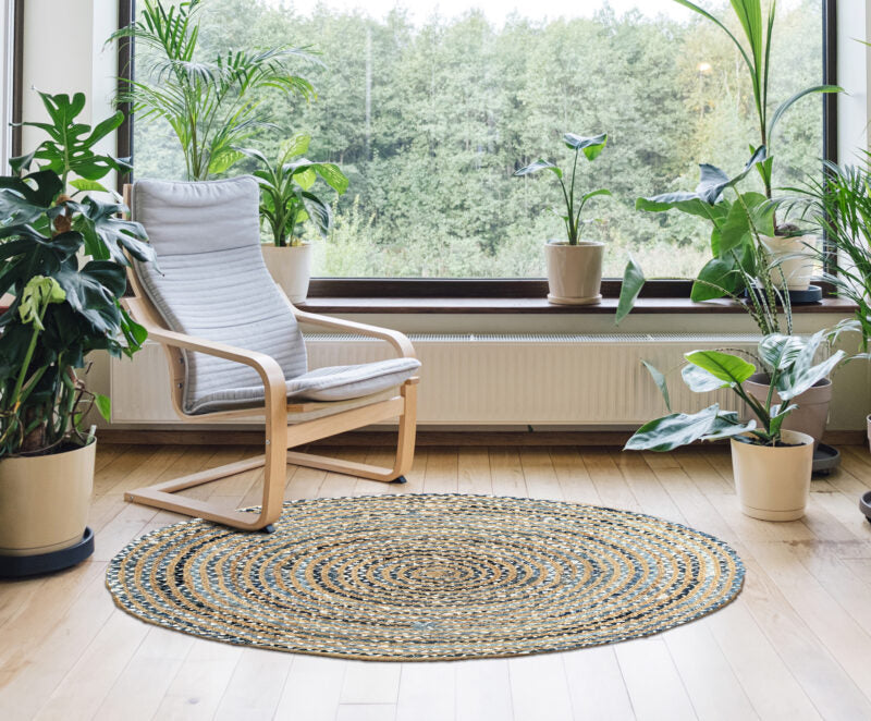 Tappeto Rotondo in Juta e Cotone Intrecciato a Mano ø110 Modello Juta 574