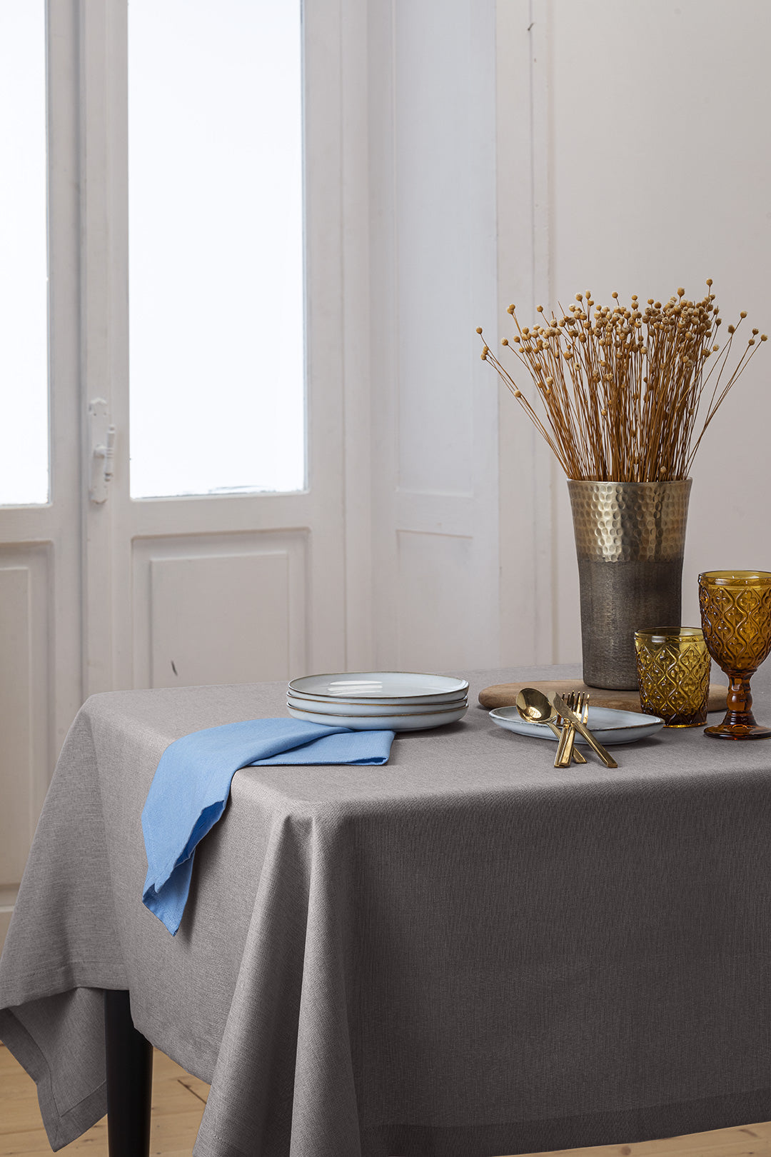 Il trattamento antimacchia viene fatto in precedenza sul filo: questo conferisce alla tovaglia l'aspetto e la mano di una tovaglia normale.