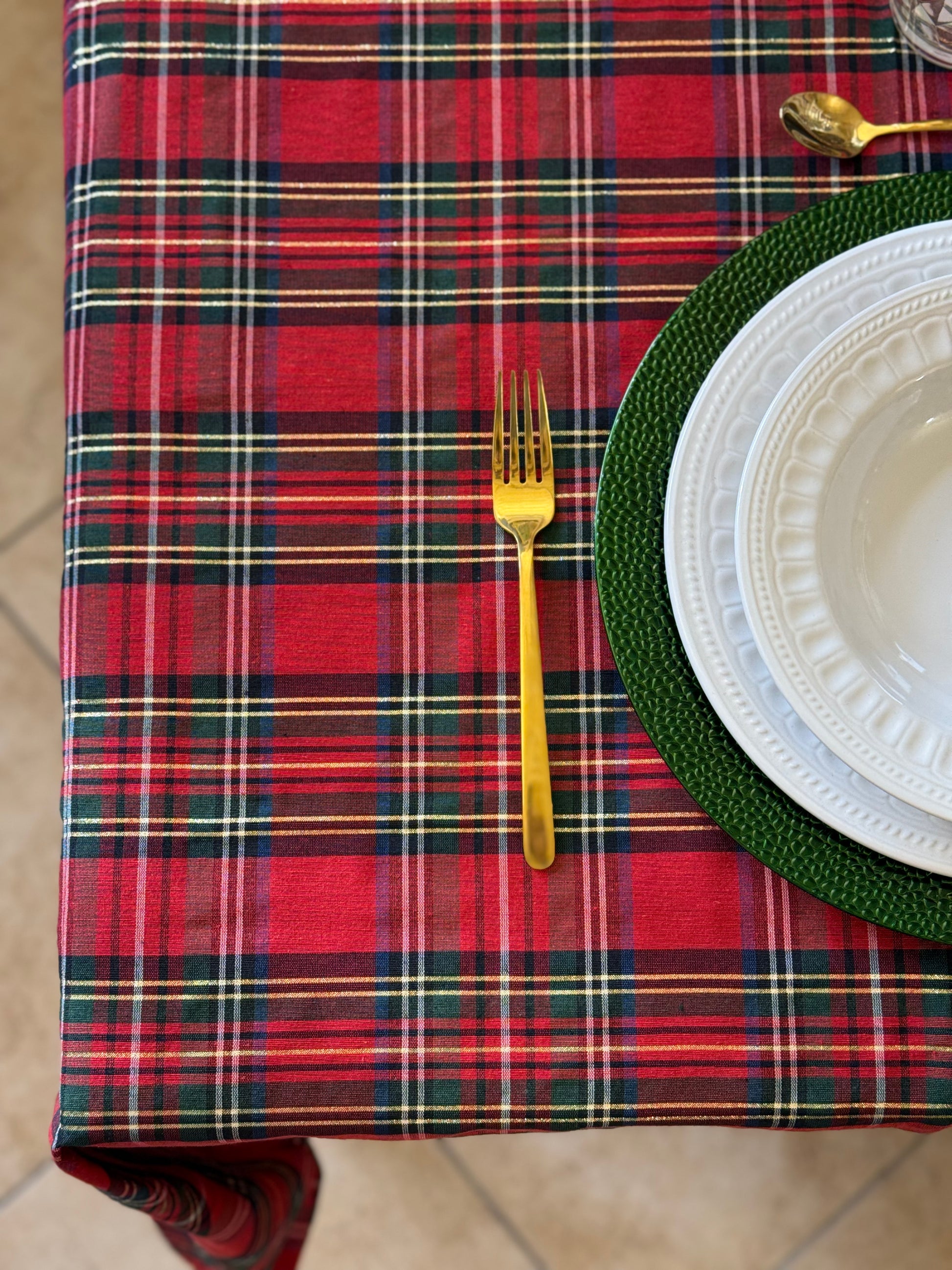 • 🎄 Motivo scozzese rosso e verde con dettagli dorati
