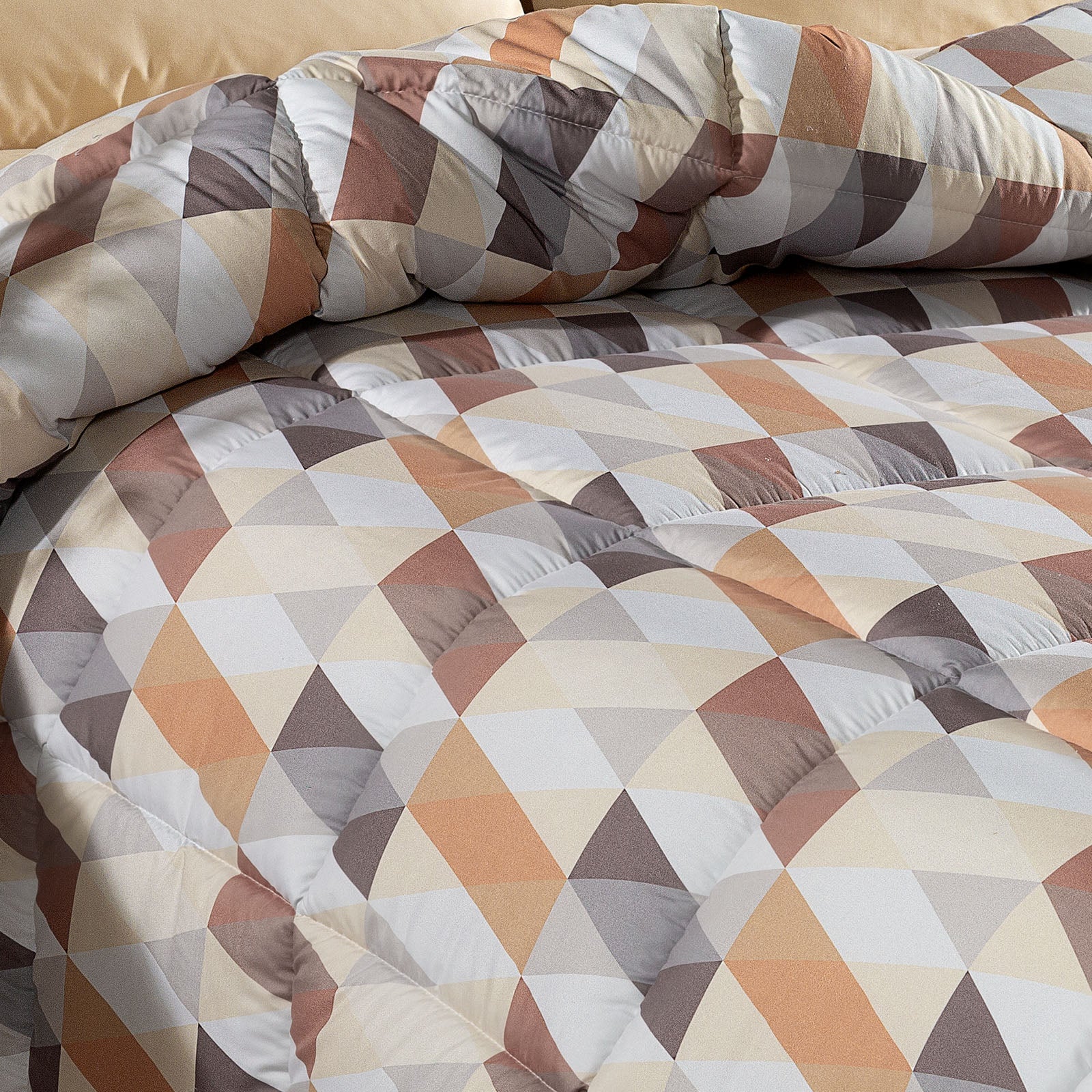 L’esclusivo design geometrico multicolore unisce tonalità calde e moderne che si adattano perfettamente a qualsiasi stile di camera da letto, dal classico al contemporaneo.