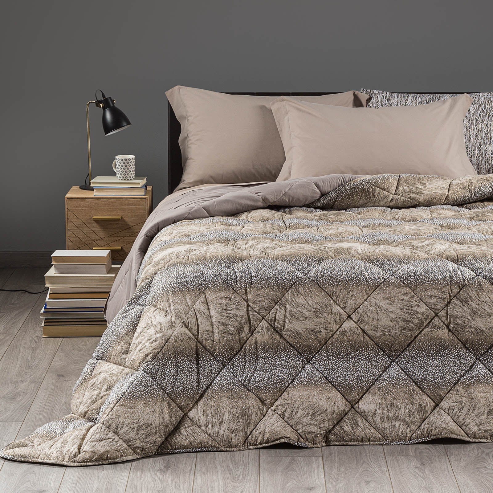 L’elegante fantasia effetto pelliccia, nei toni neutri e raffinati, dona un tocco di stile contemporaneo e accogliente alla tua camera da letto.