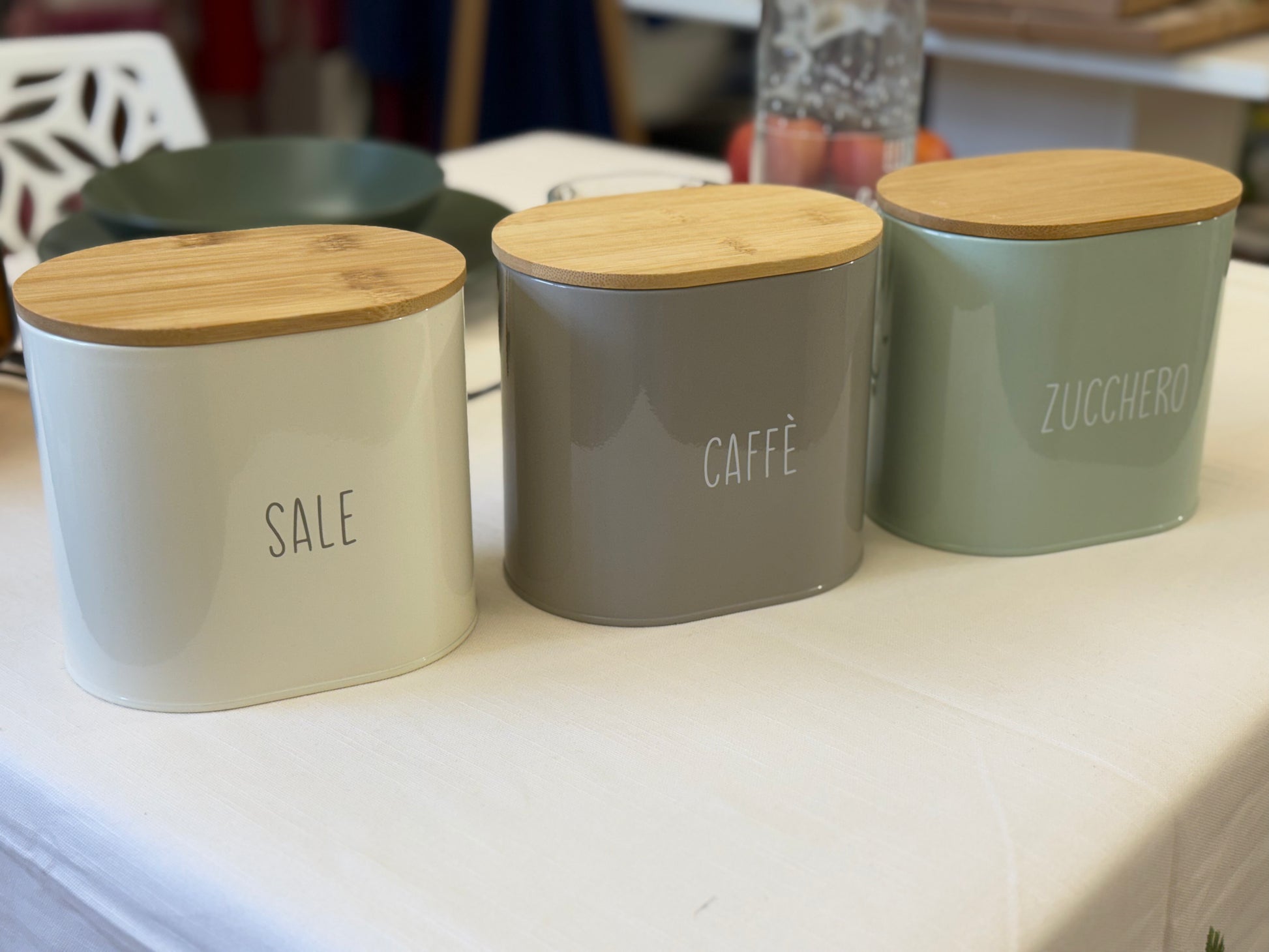 Tris Barattoli in Latta con Coperchio in Bamboo Ermetico