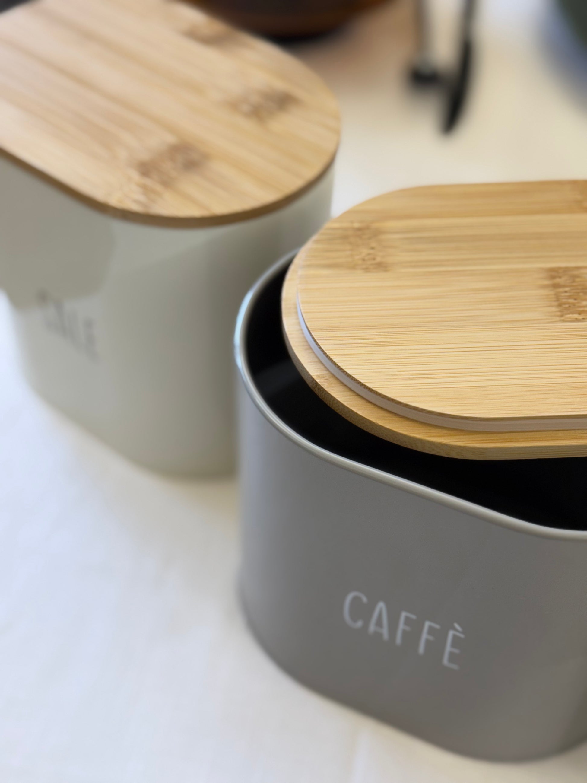 Tris Barattoli in Latta con Coperchio in Bamboo